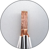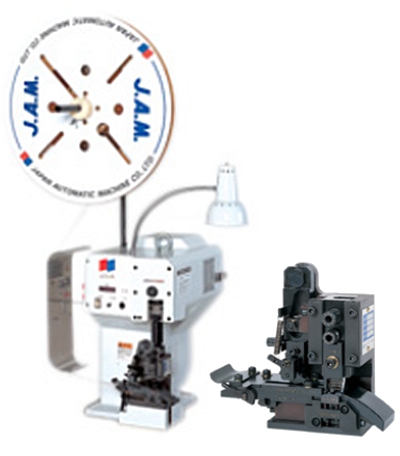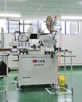 全自動切断・圧着・はんだ機により、電線の切断から皮むき、端子の圧着、はんだ付けまでを自動で行います。